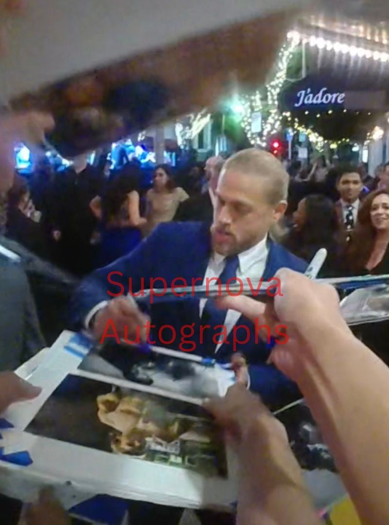 -Signed in person by Charlie Hunnam with a blue sharpie so you don't have to worry about the autograph fading.