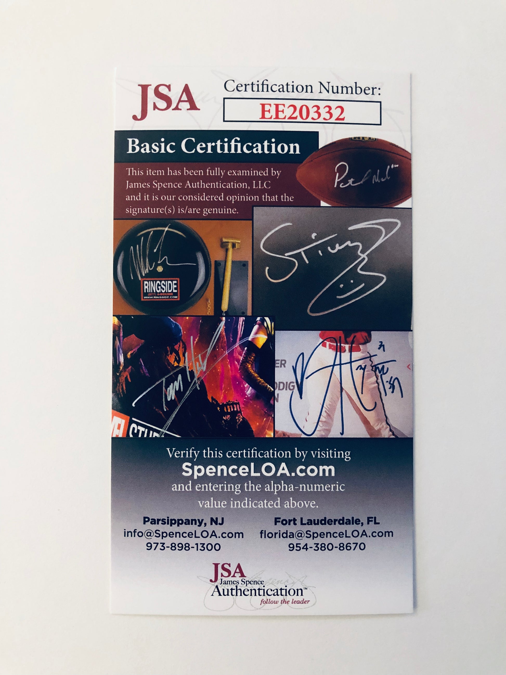 -Comes with a Beckett Certificate of Authenticity. JSA Cert # EE20332