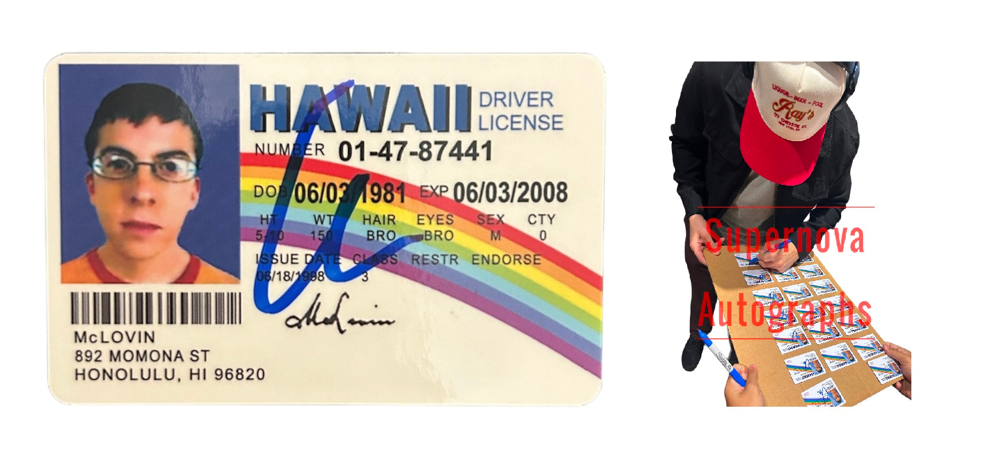 -Comes with 4x6 proof photo of Christopher Mintz-Plasse signing the ID card so you know its 100% real