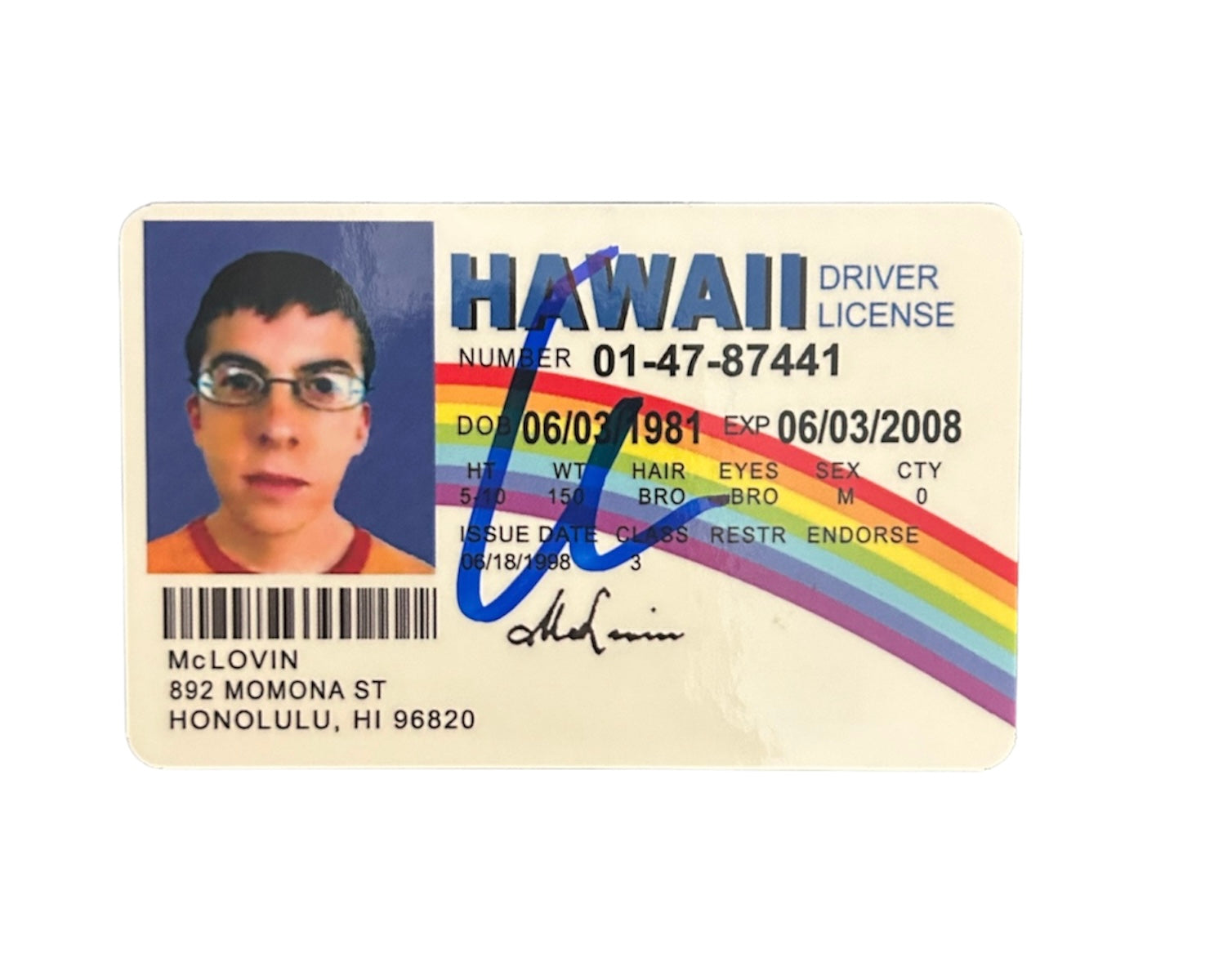 Christopher Mintz-Plasse Signed Autographed McLovin Superbad ID Card with Exact Photo Proof