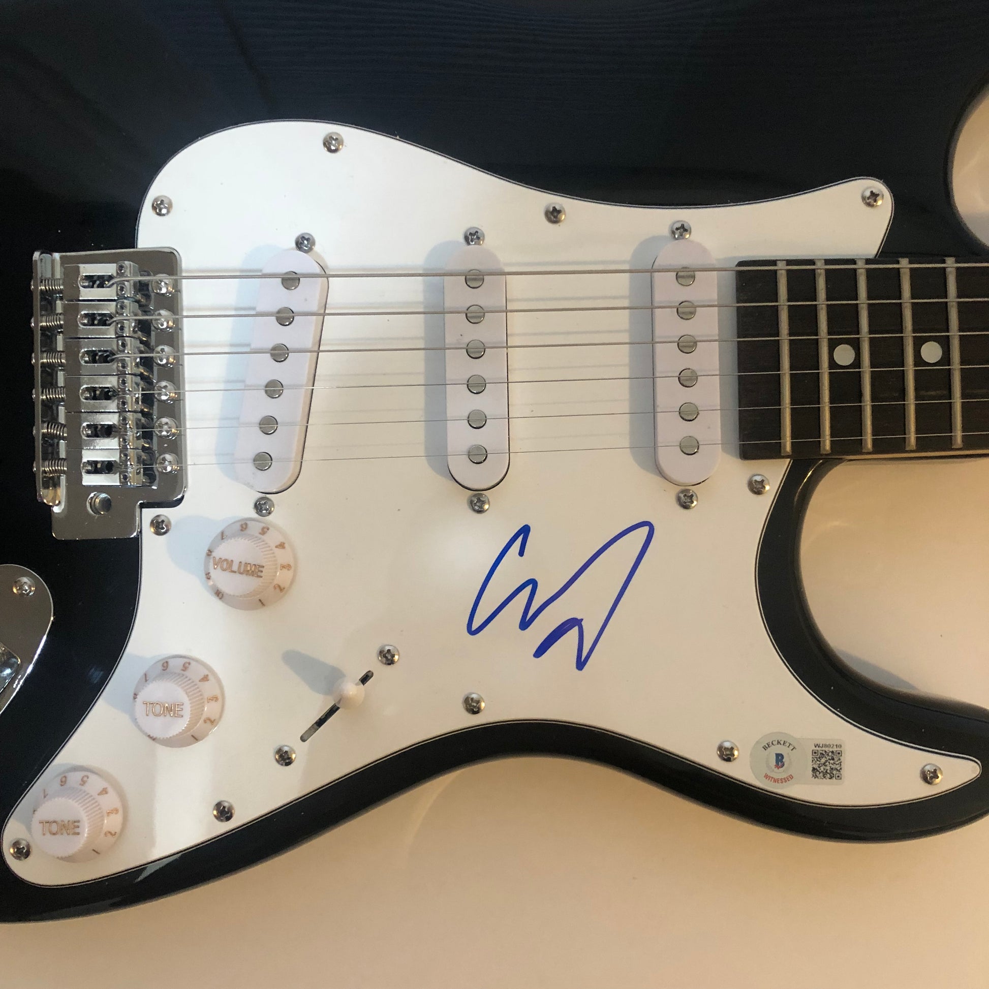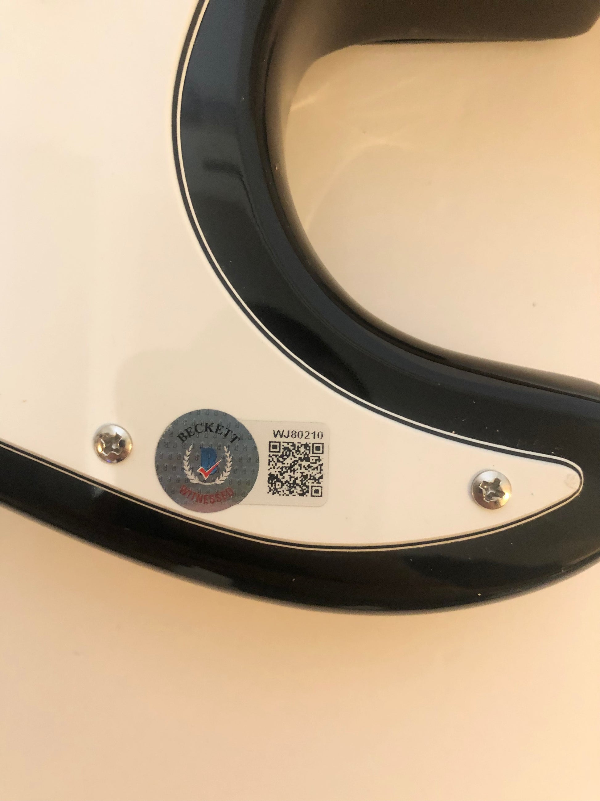 -This signed photo features a new Beckett Witness Hologram QR Code, which means a Beckett Authentication Representative was present when the guitar was signed by Corey Taylor.  The new Beckett Witness Hologram QR code does not come with a matching Beckett Card, instead it is verified by a scannable QR Code that brings up the Beckett COA Authentication site.