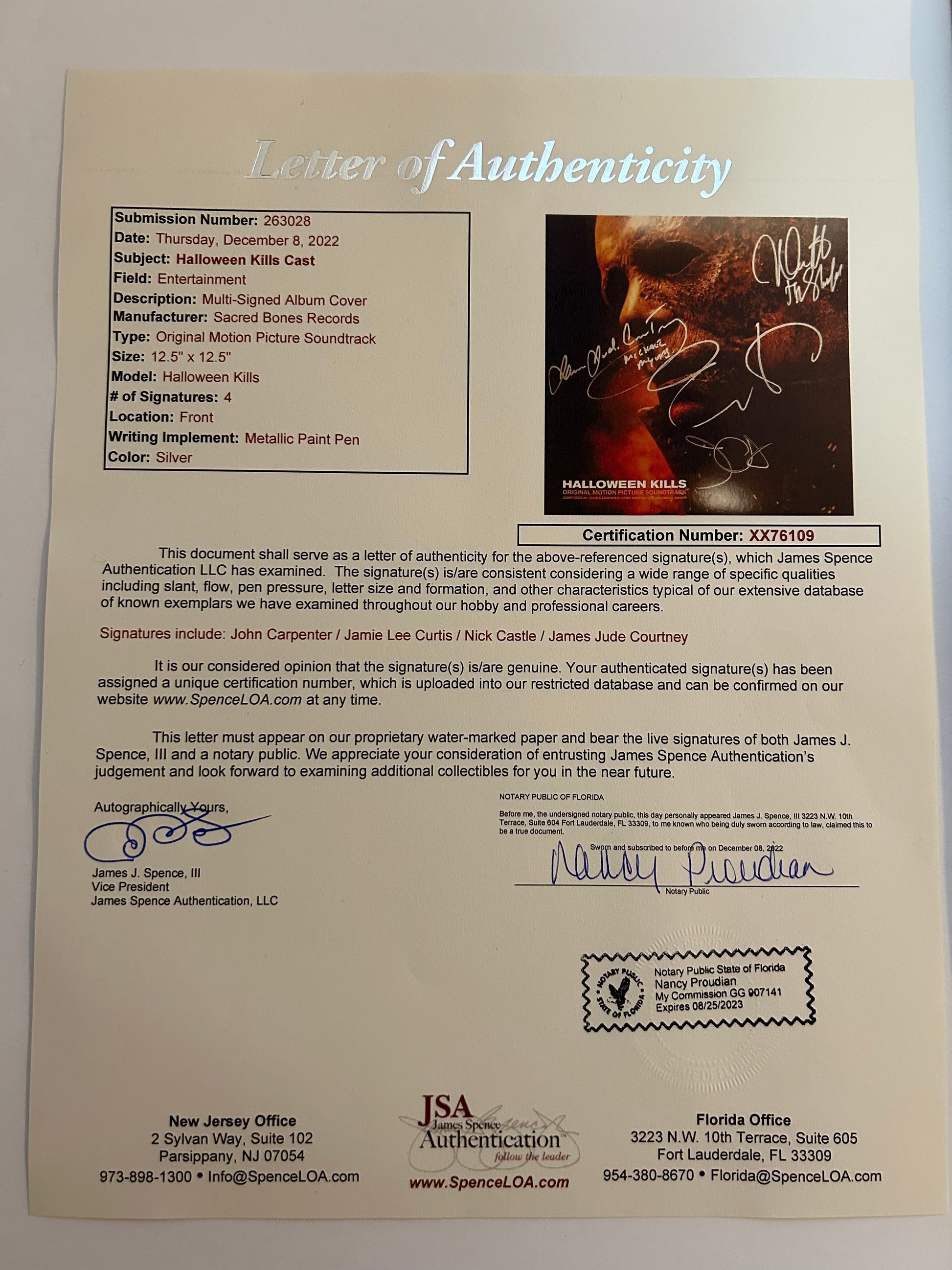 Jamie Lee Curtis, John Carpenter, Nick Castle, James Jude Courtney Signed Autographed Halloween Kills Vinyl with JSA COA