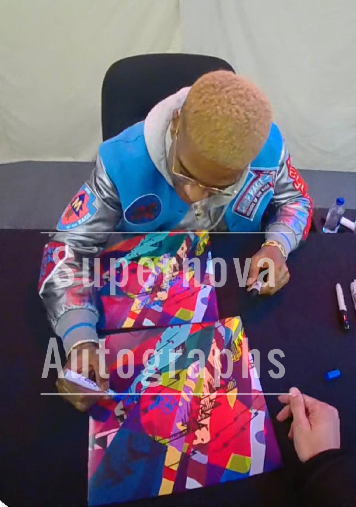-Signed in person by Kid Cudi with a blue deco paint pen so you don't have to worry about the autograph fading.