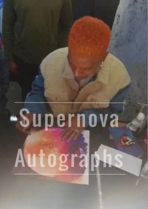 -Signed in person by Kid Cudi with a black sharpie so you don't have to worry about the autograph fading.