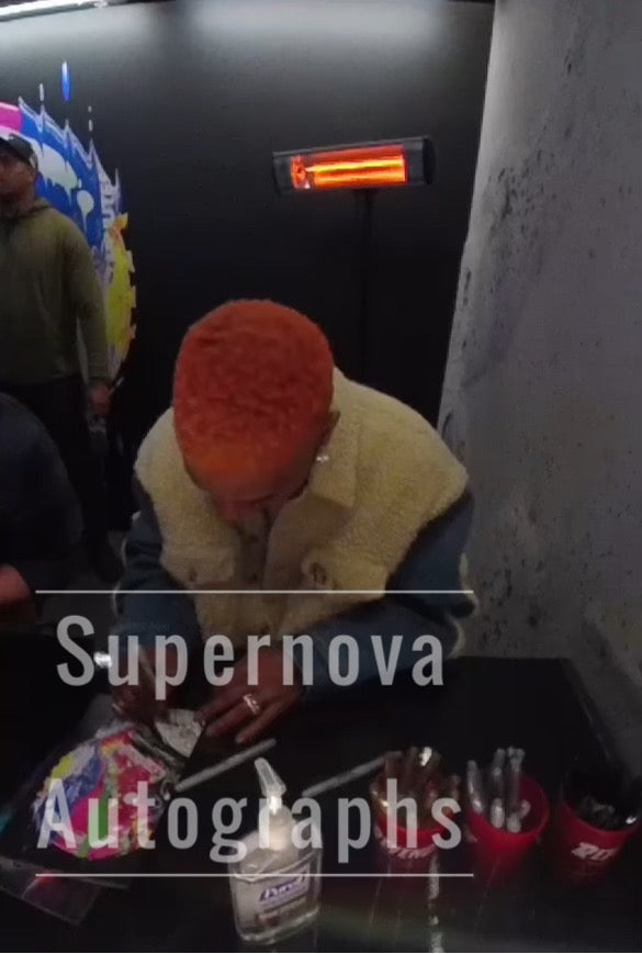 -Signed in Person by Kid Cudi with a black sharpie so you don't have to worry about the autograph fading.