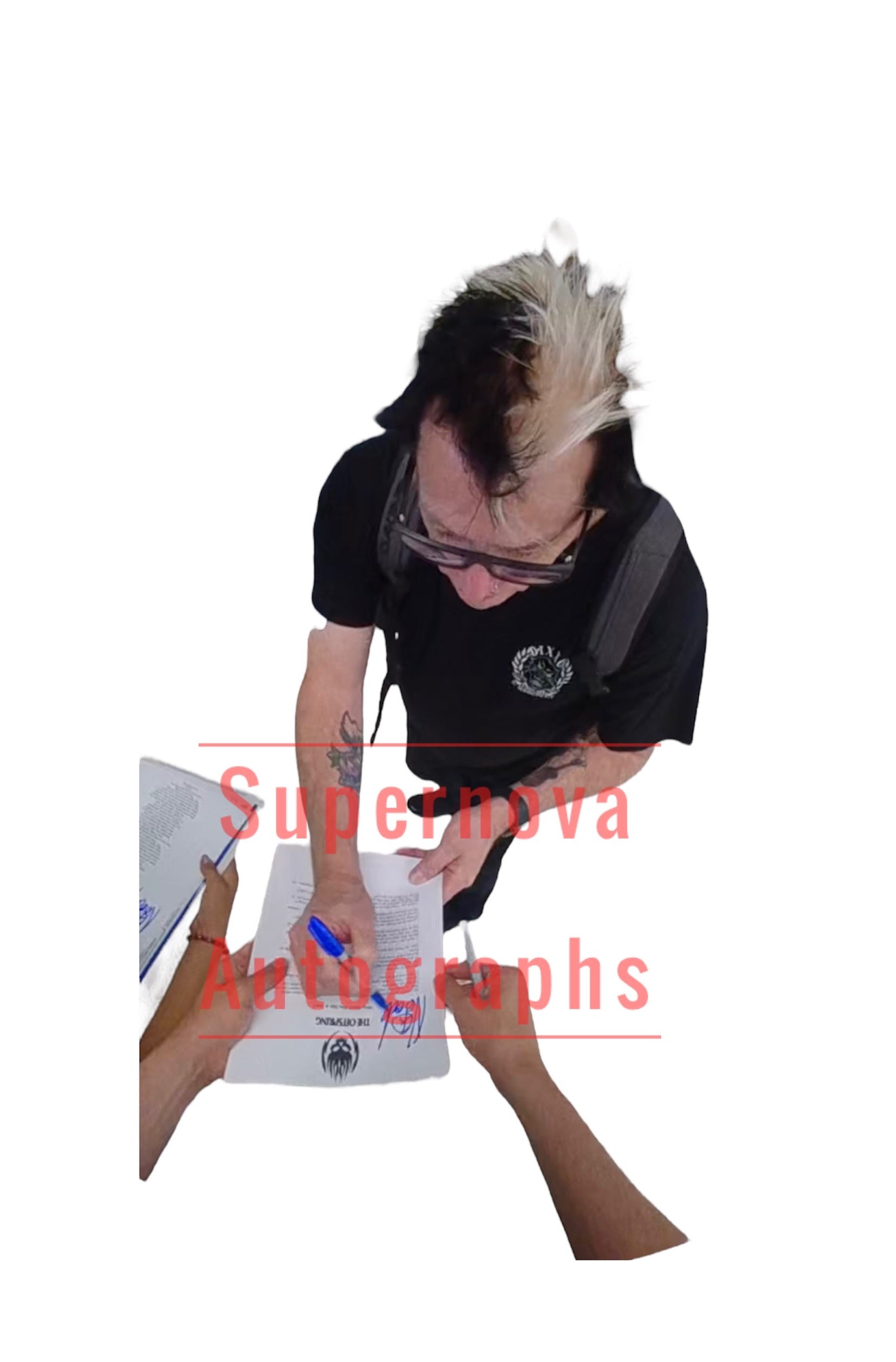 -Signed in person by Noodles with a black sharpie so you don't have to worry about the autograph fading.