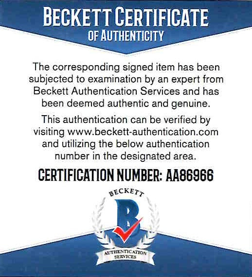 -Comes with a Beckett Certificate of Authenticity. Beckett Cert # AA86966