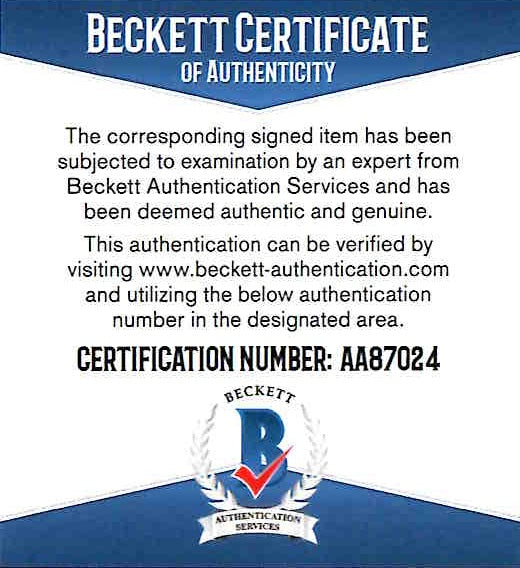 -Comes with a Beckett Certificate of Authenticity. Beckett Cert # AA87024