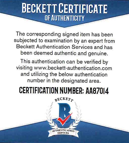 -Comes with a Beckett Certificate of Authenticity. Beckett Cert # AA87014