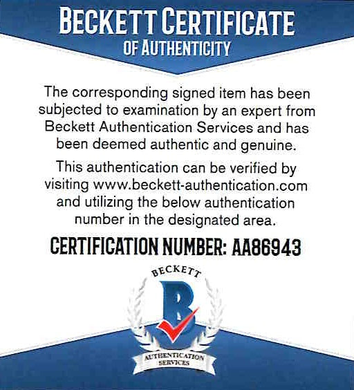 -Comes with a Beckett Certificate of Authenticity. Beckett Cert # AA86943